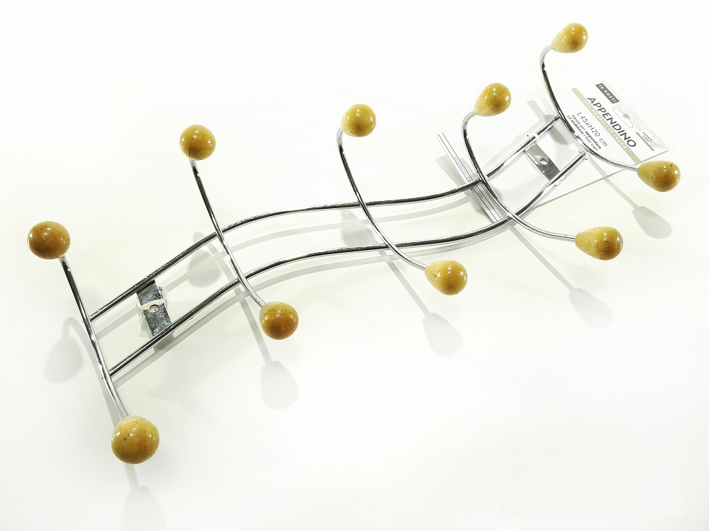 Κρεμάστρα τοίχου 10 θέσεων ασημί/φυσικό μέταλλο/ξύλο 45x20cm.