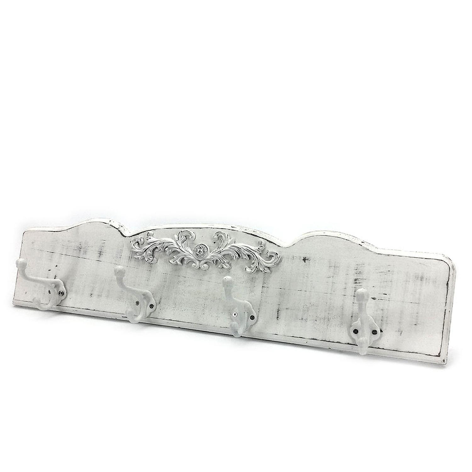 Κρεμάστρα τοίχου 4 θέσεων λευκό παλαιωμένο ξύλο/μέταλλο 15.5×1.3x65cm.