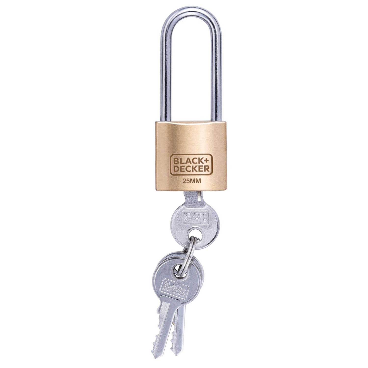 Το λουκέτο της BLACK+DECKER με διάμετρο 25mm και μεγάλο στεφάνι είναι ιδανικό για την ασφάλιση θυρών και αποθηκευτικών χώρων. Κατασκευασμένο από ανθεκτικό ορείχαλκο, προσφέρει αξιοπιστία και αντοχή στις καιρικές συνθήκες.
