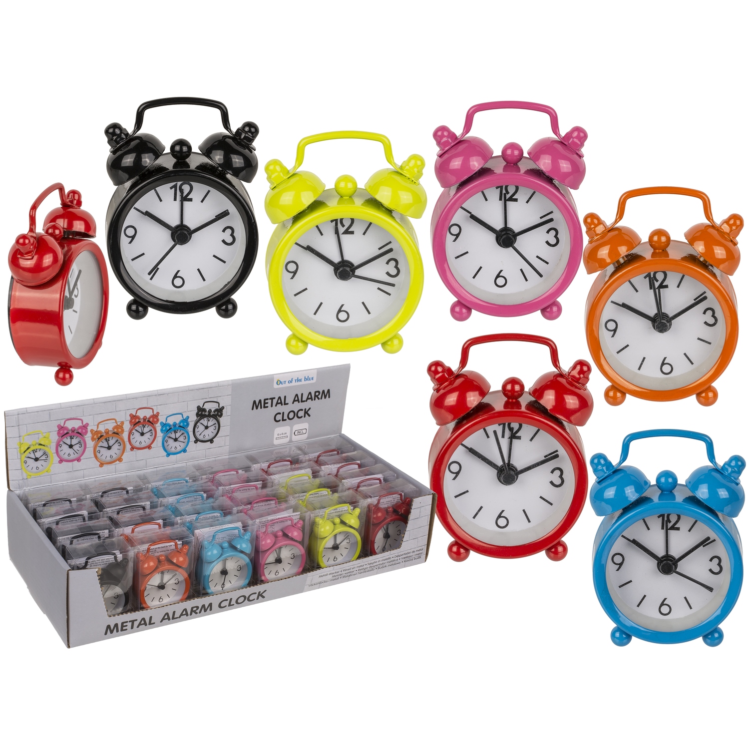Μίνι ξυπνητήρι μέταλλο 6x4cm σε 6 χρώματα.