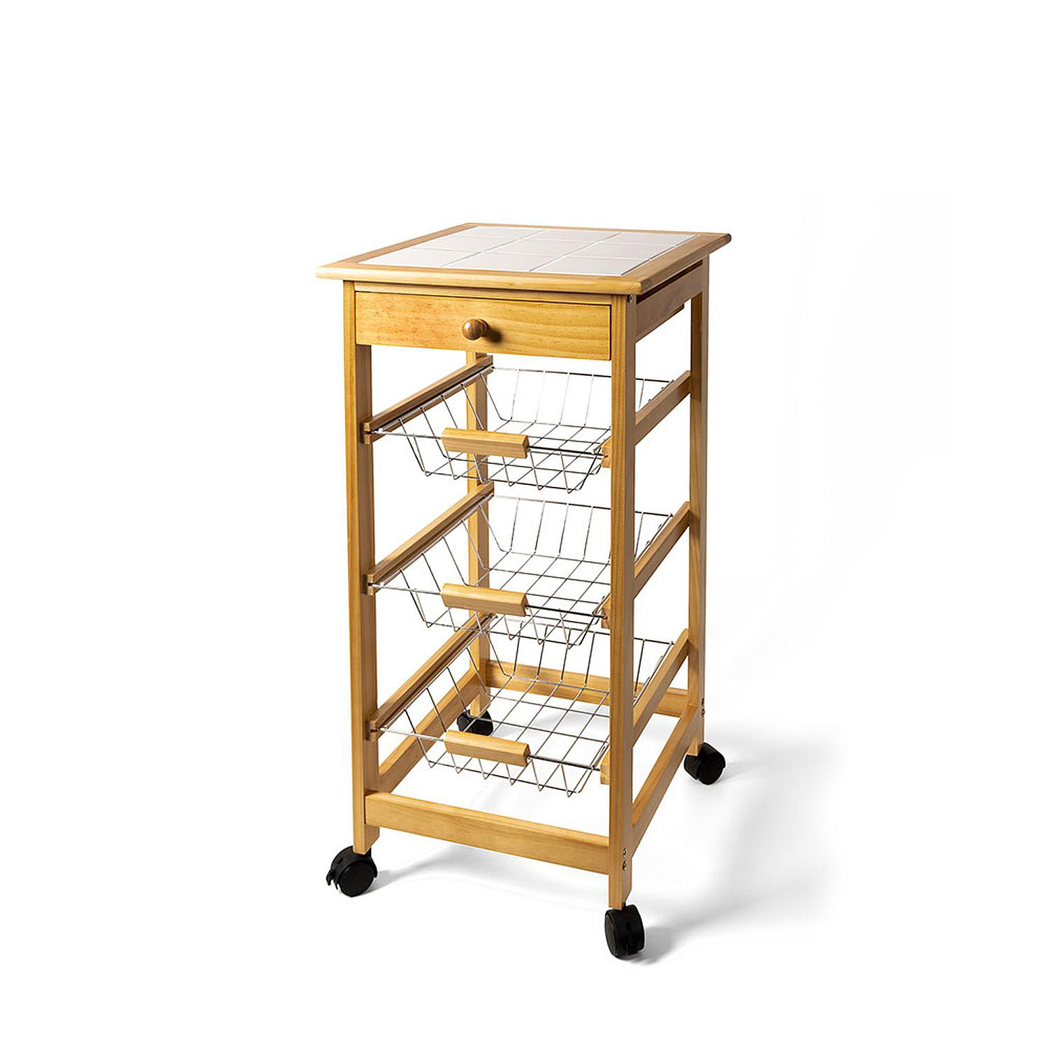 Μανάβης Τρόλεϊ Με 3 Καλάθια Και Συρτάρι Φυσικό Μπαμπού/Μέταλλο 37x37x76cm