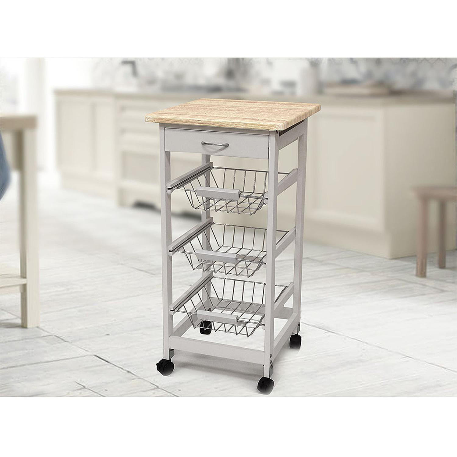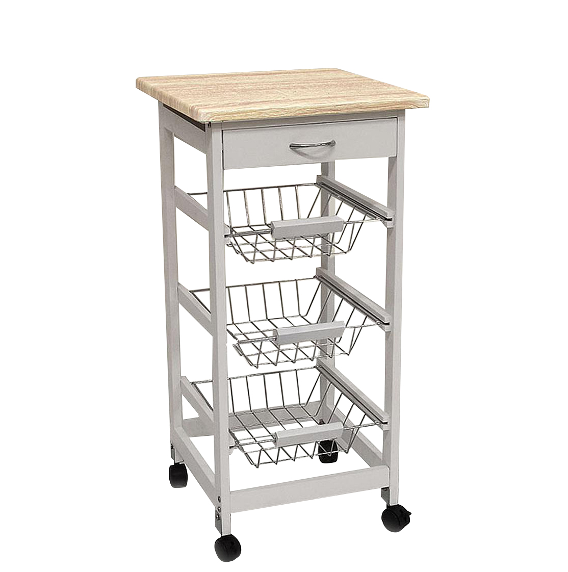 Μανάβης τρόλεϊ με 3 καλάθια και συρτάρι λευκό/φυσικό μέταλλο/ξύλο 37x37x76cm.