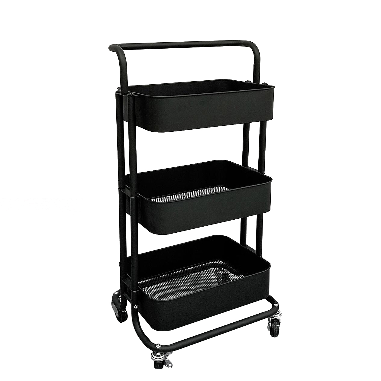 Μανάβης τρόλεϊ με 3 ράφια και χειρολαβή μαύρο μέταλλο 35×42.5x79cm.