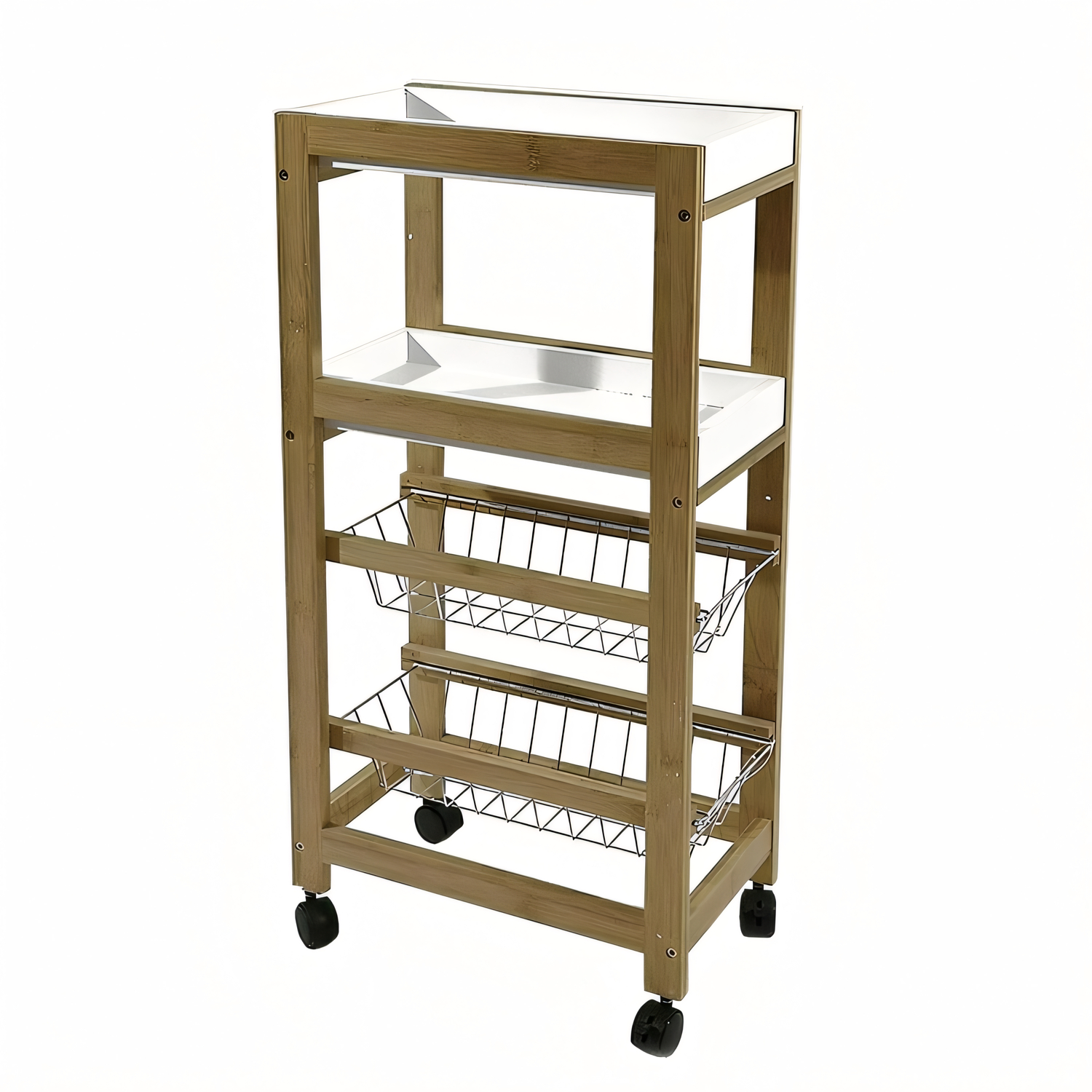 Μανάβης Τρόλεϊ Με 4 Καλάθια Φυσικό Μπαμπού/Μέταλλο/Πλαστικό 40x22x83cm