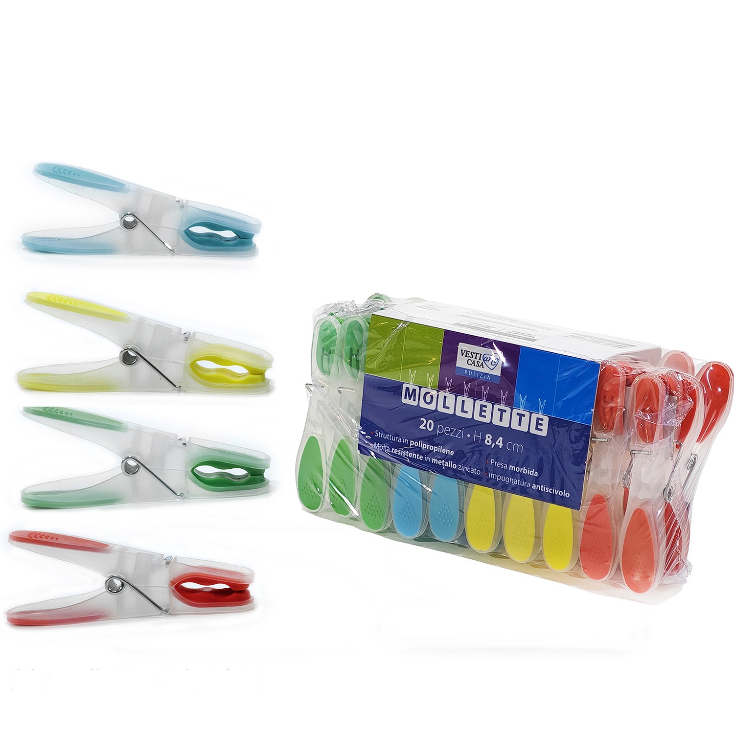 Μανταλάκια Πολύχρωμα Πλαστικό/Μέταλλο 8.4cm 20Τμχ Σε 6 Χρώματα