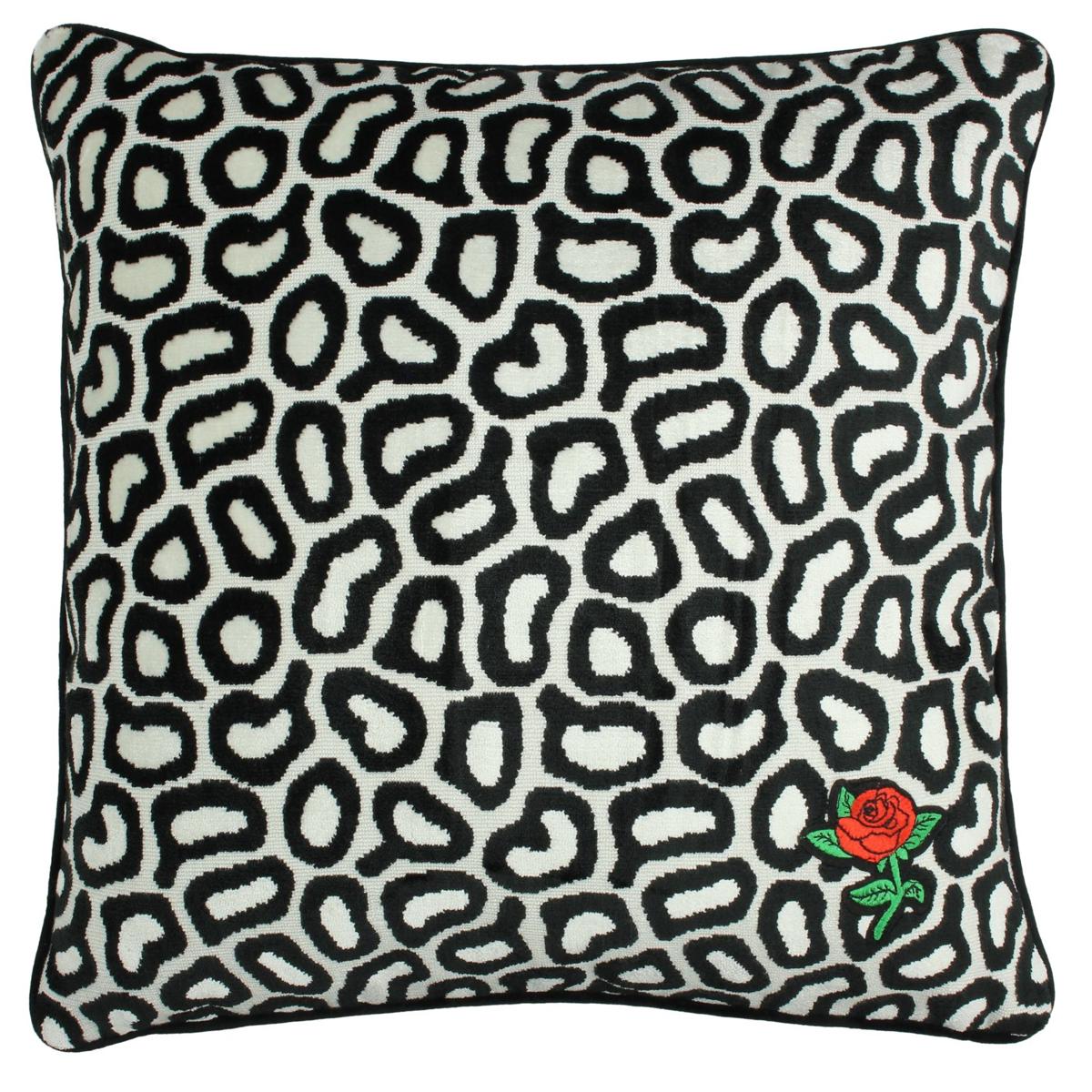 Μαξιλάρι με σχέδιο τριαντάφυλλο μαύρο polyester 43x43cm.