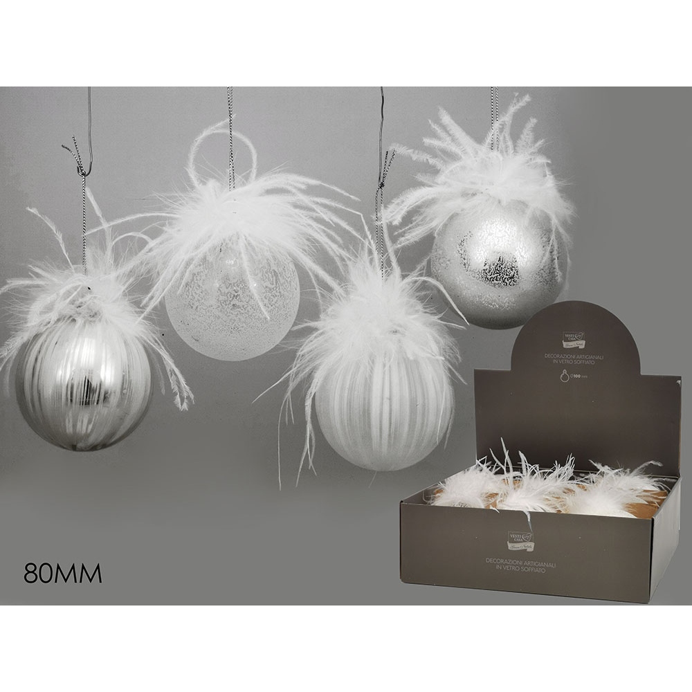 Μπάλα ασημί/λευκό γυαλί φ8cm σε 4 σχέδια.