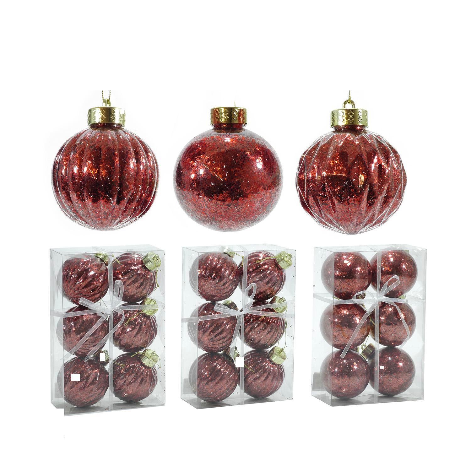 Μπάλα Κόκκινο Γυαλί Φ8cm Σετ 6Τμχ Σε 3 Σχέδια