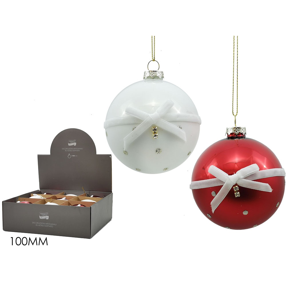 Μπάλα Λευκό/Κόκκινο Γυαλί Φ10cm Σε 2 Χρώματα