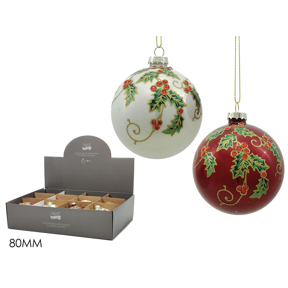 Μπάλα με γκι λευκό/κόκκινο γυαλί Φ8cm σε 2 χρώματα.