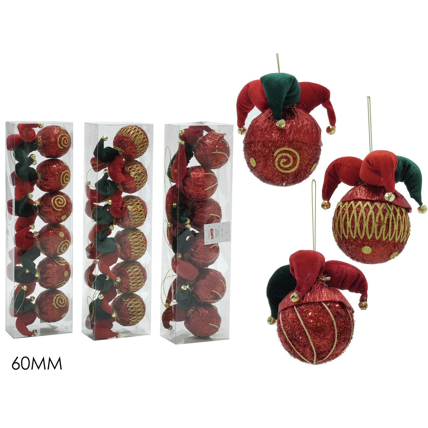 Μπάλα με καπέλο γελωτοποιού κόκκινο Φ6cm σετ 6τμχ σε 3 σχέδια.