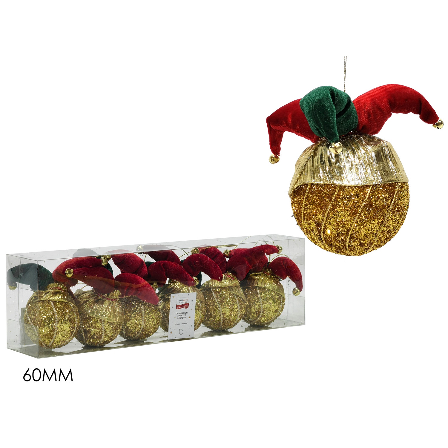 Μπάλα με καπέλο γελωτοποιού χρυσό Φ6cm σετ 6τμχ.