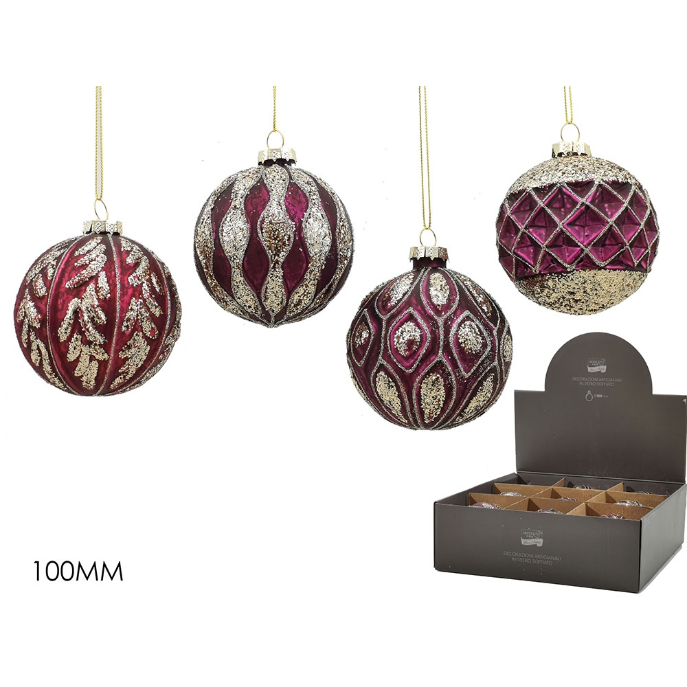 Μπάλα φούξια γυαλί Φ10cm σε 4 σχέδια.