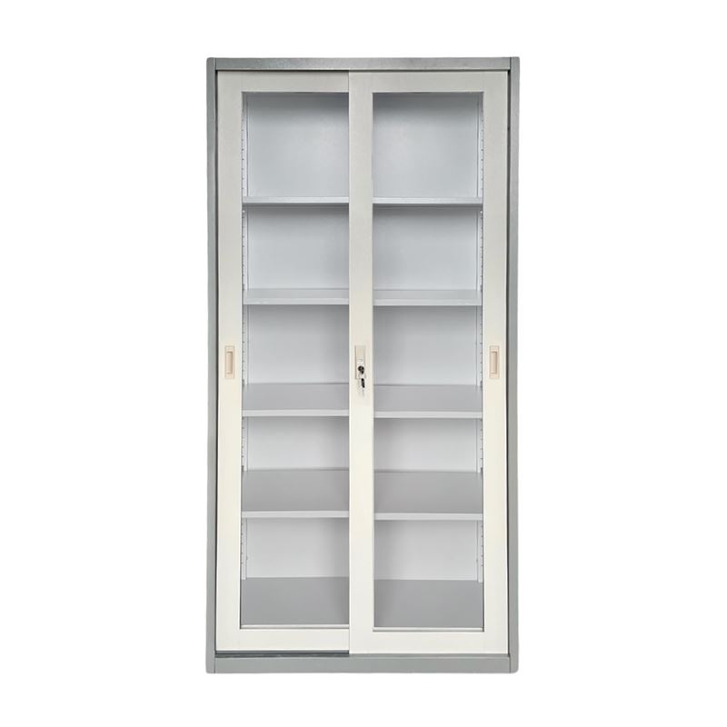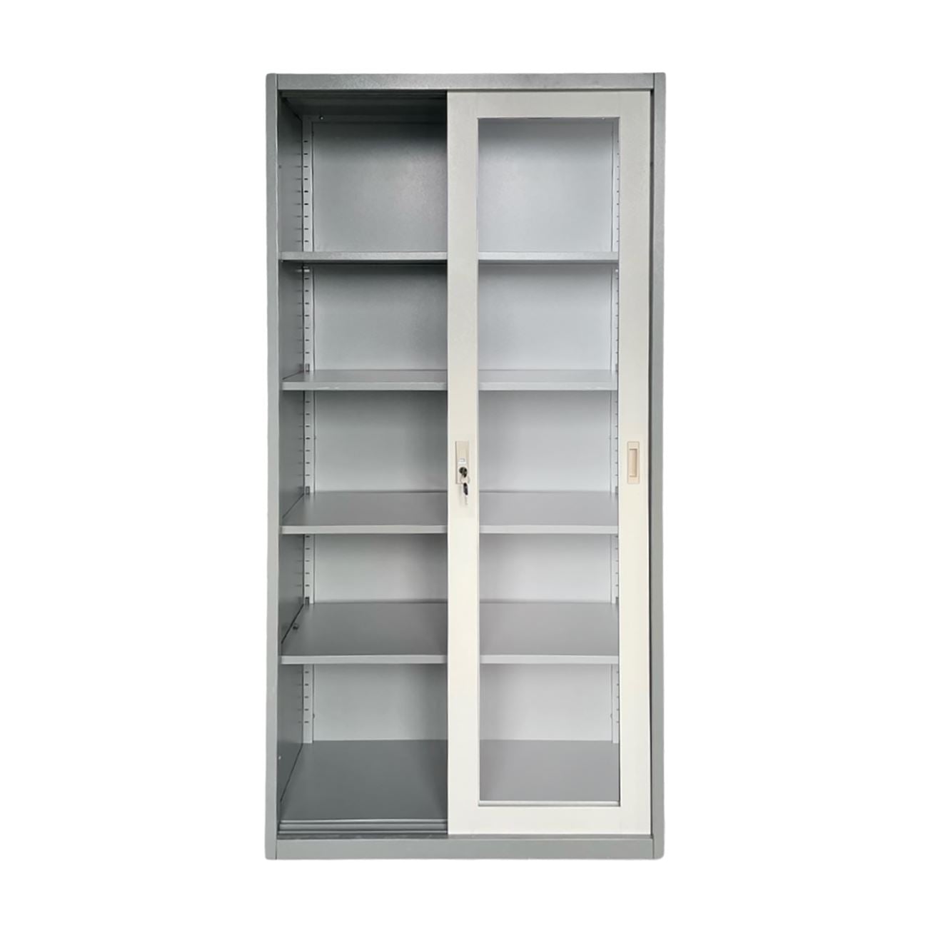 ΝΤΟΥΛΑΠΑ Δίφυλλη με Συρόμενες επάλληλες πόρτες, 4 Ράφια, Μέταλλο Βαφή Γκρι