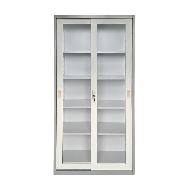 ΝΤΟΥΛΑΠΑ Δίφυλλη με Συρόμενες επάλληλες πόρτες, 4 Ράφια, Μέταλλο Βαφή Γκρι