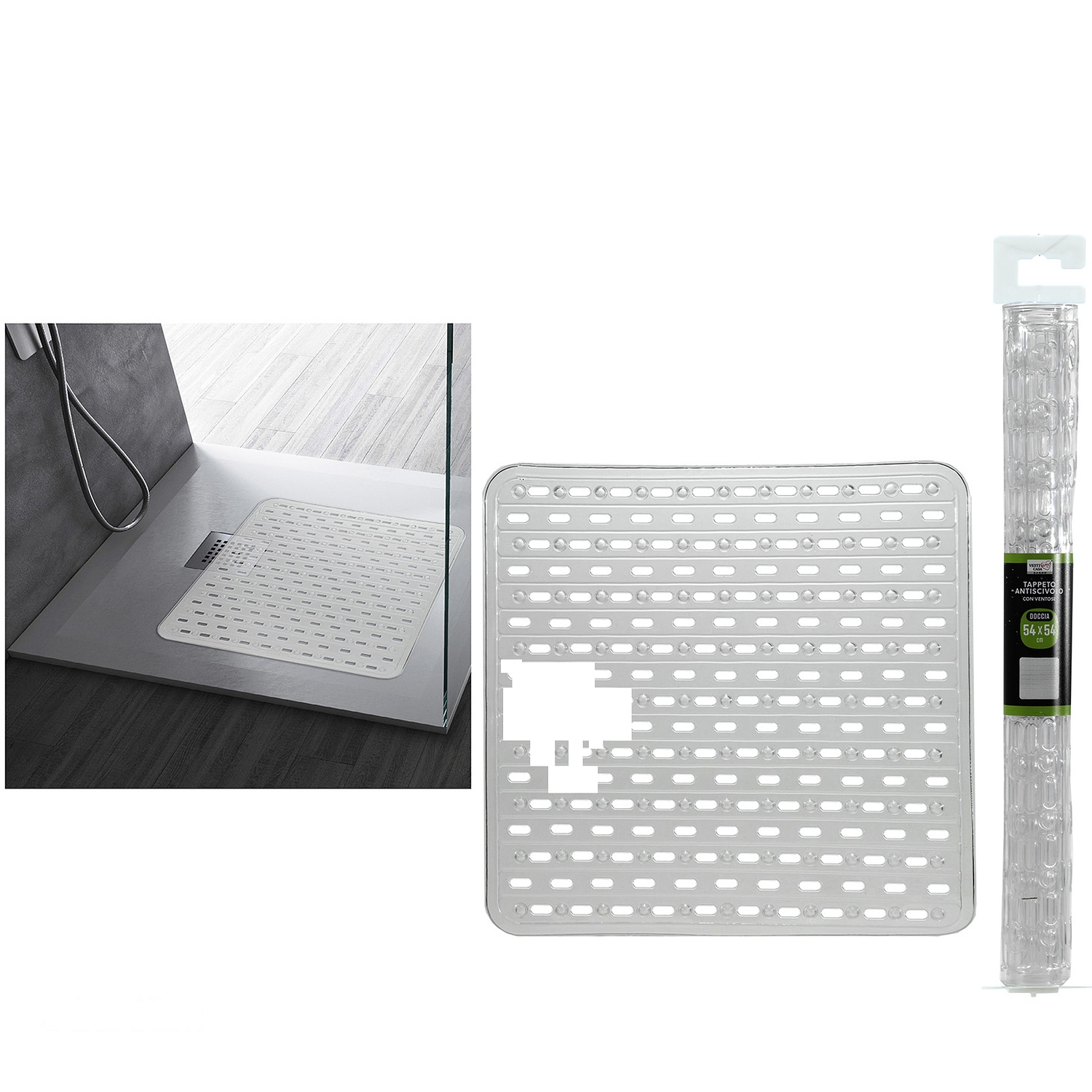 Διάφανο πατάκι μπάνιου κατασκευασμένο από PVC, ιδανικό για χρήση στην ντουζιέρα.
