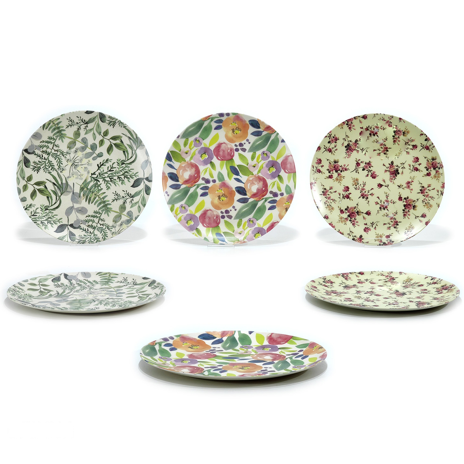 Πολύχρωμο πιάτο από πορσελάνη με διάμετρο 25CM, διακοσμημένο με σχέδια λουλουδιών. Ιδανικό για καθημερινή χρήση και διακόσμηση τραπεζιού.