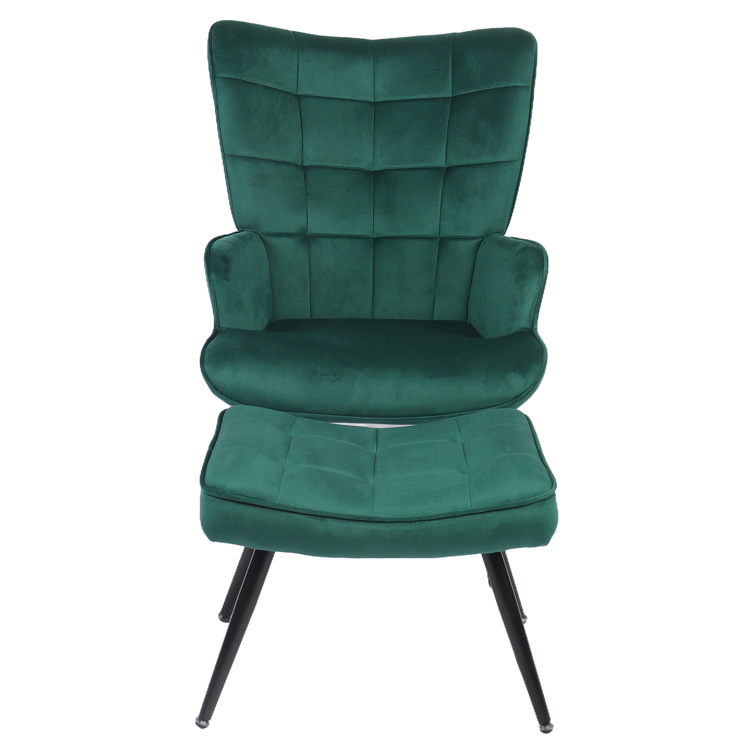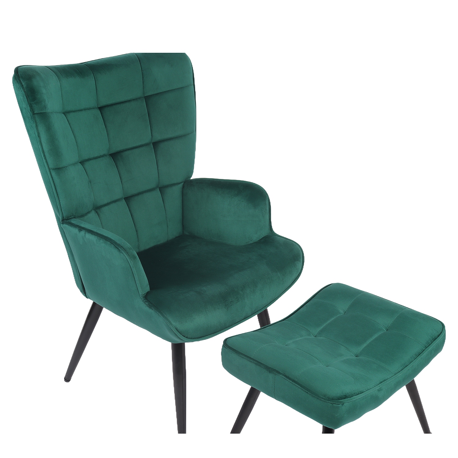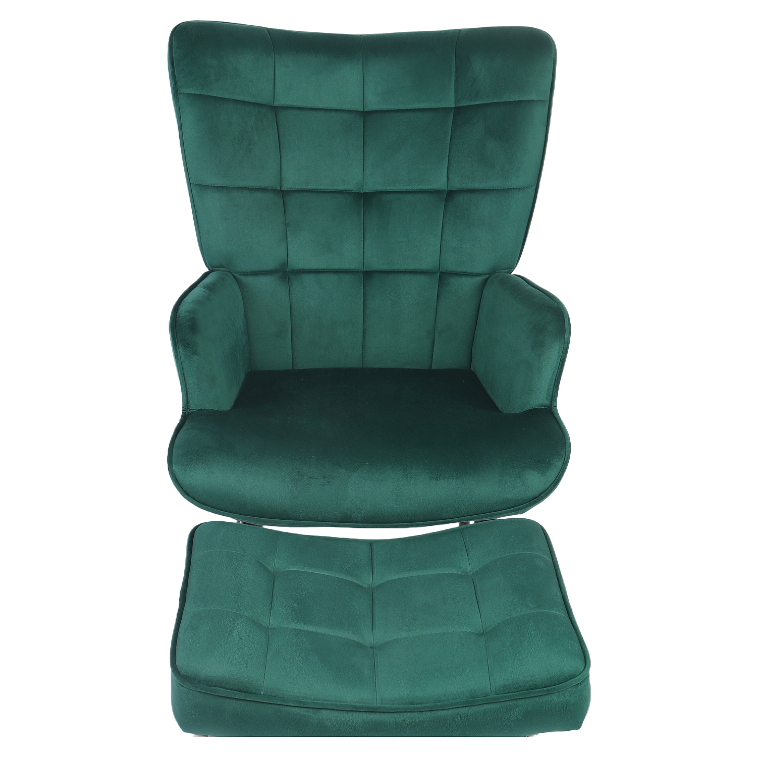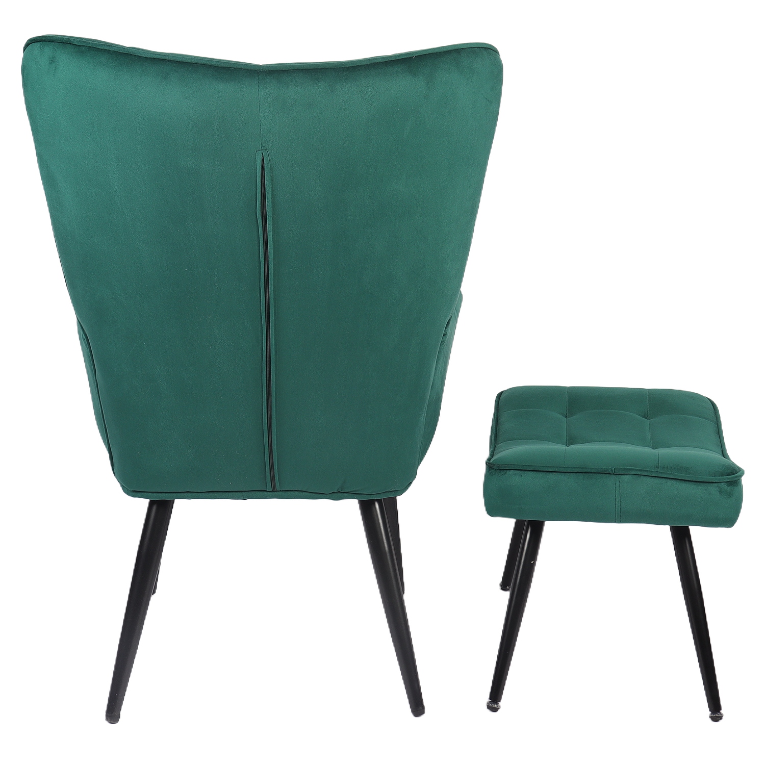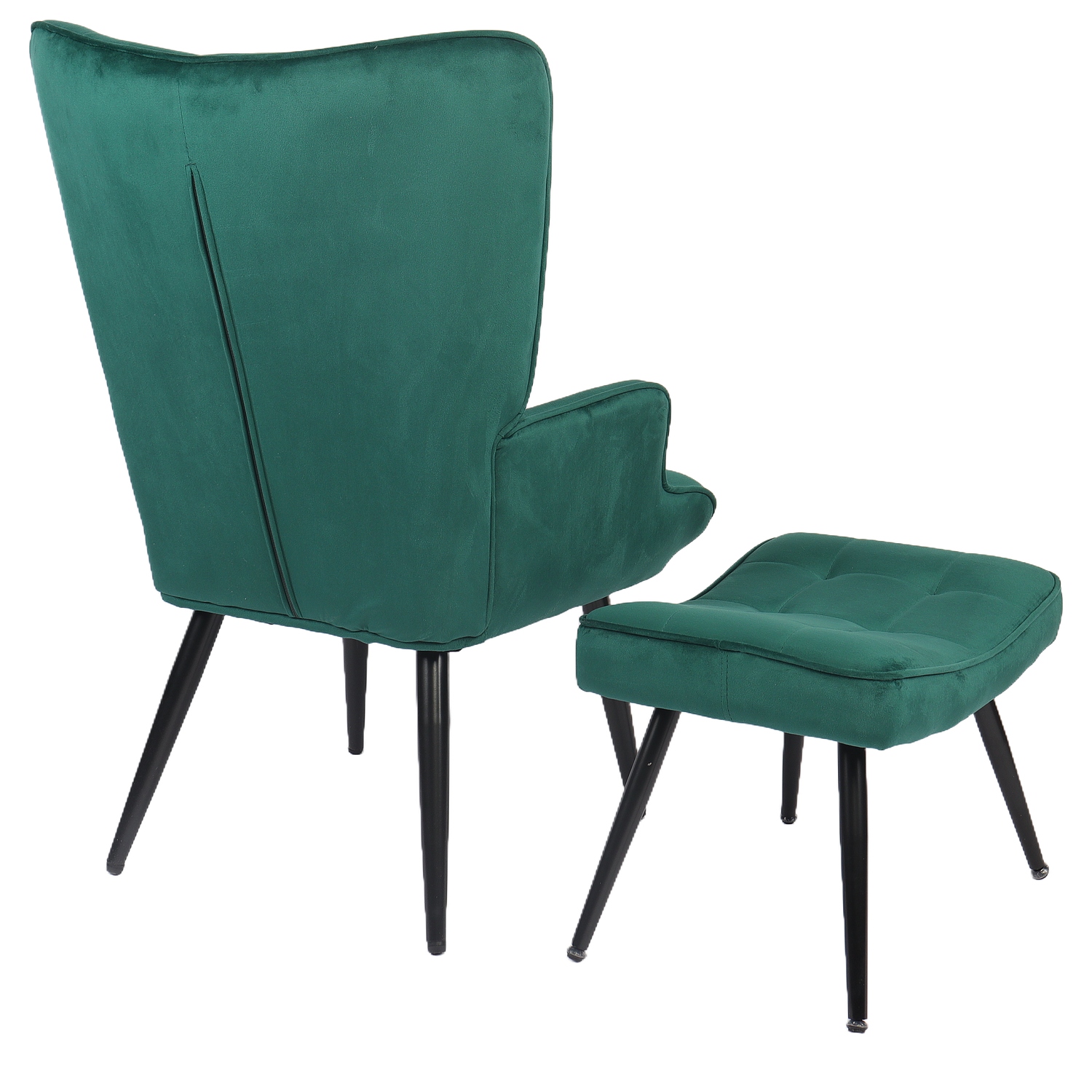 Πολυθρόνα Μπερζέρα Με Υποπόδιο ArteLibre LENNOX Πράσινο Βελούδο/Ξύλο 96x68x73cm