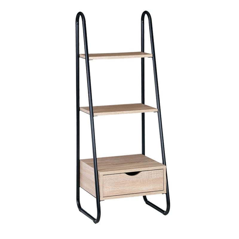ΕΟ428 Ραφιέρα με Συρτ. 44x37x114cm Μεταλ.Μαύρο/απ.Σημύδας