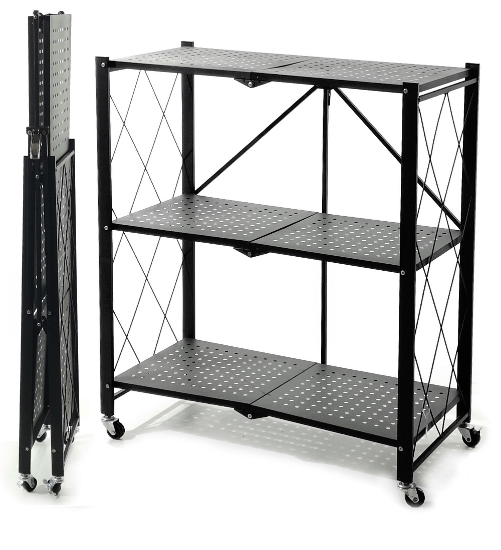 Ραφιέρα με 3 ράφια πτυσσόμενη και τροχήλατη για εύκολη μεταφορά και αποθήκευση.