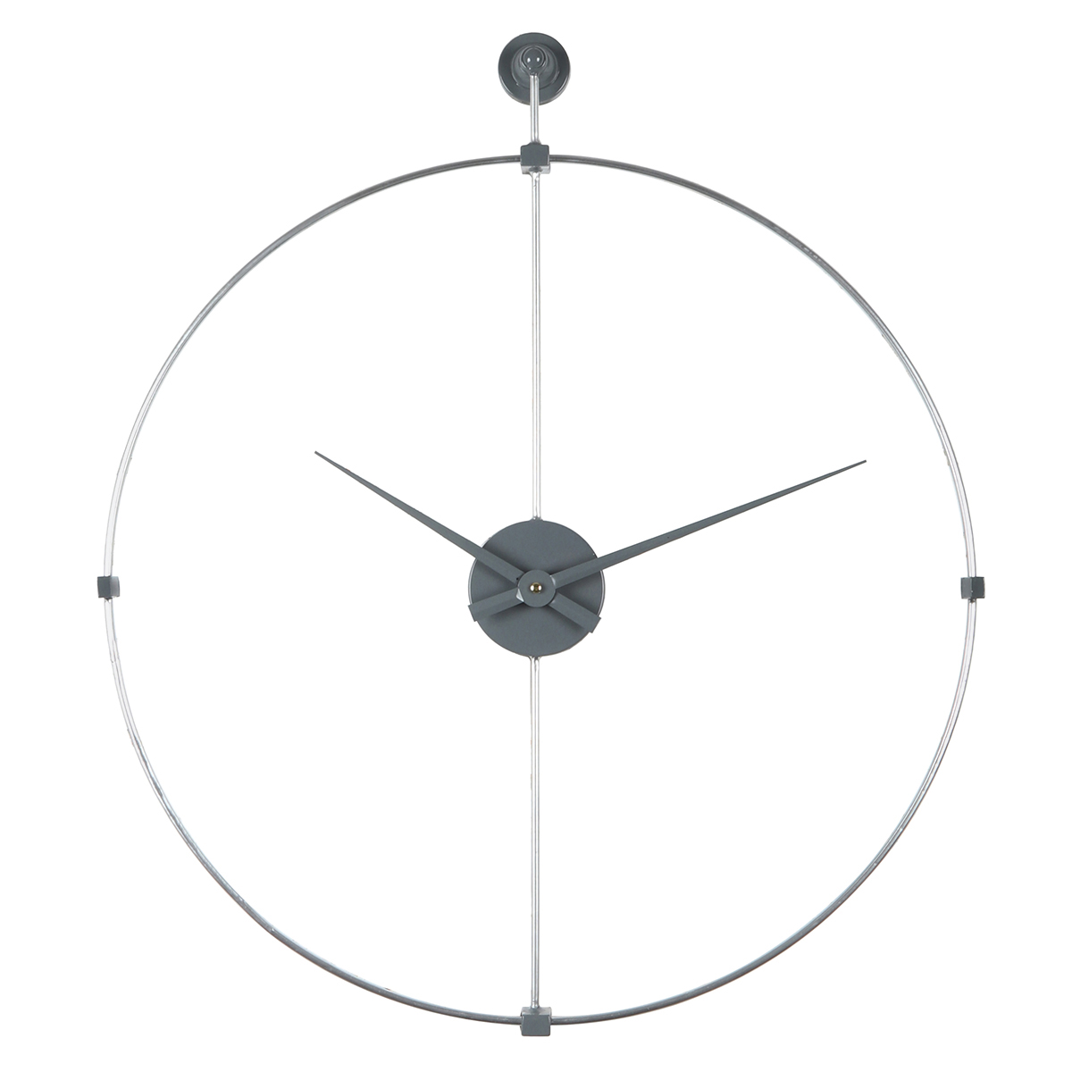 Ρολόι τοίχου από μεταλλικό σκελετό σε σύγχρονο σχέδιο με ασημί δείκτες της ώρας.