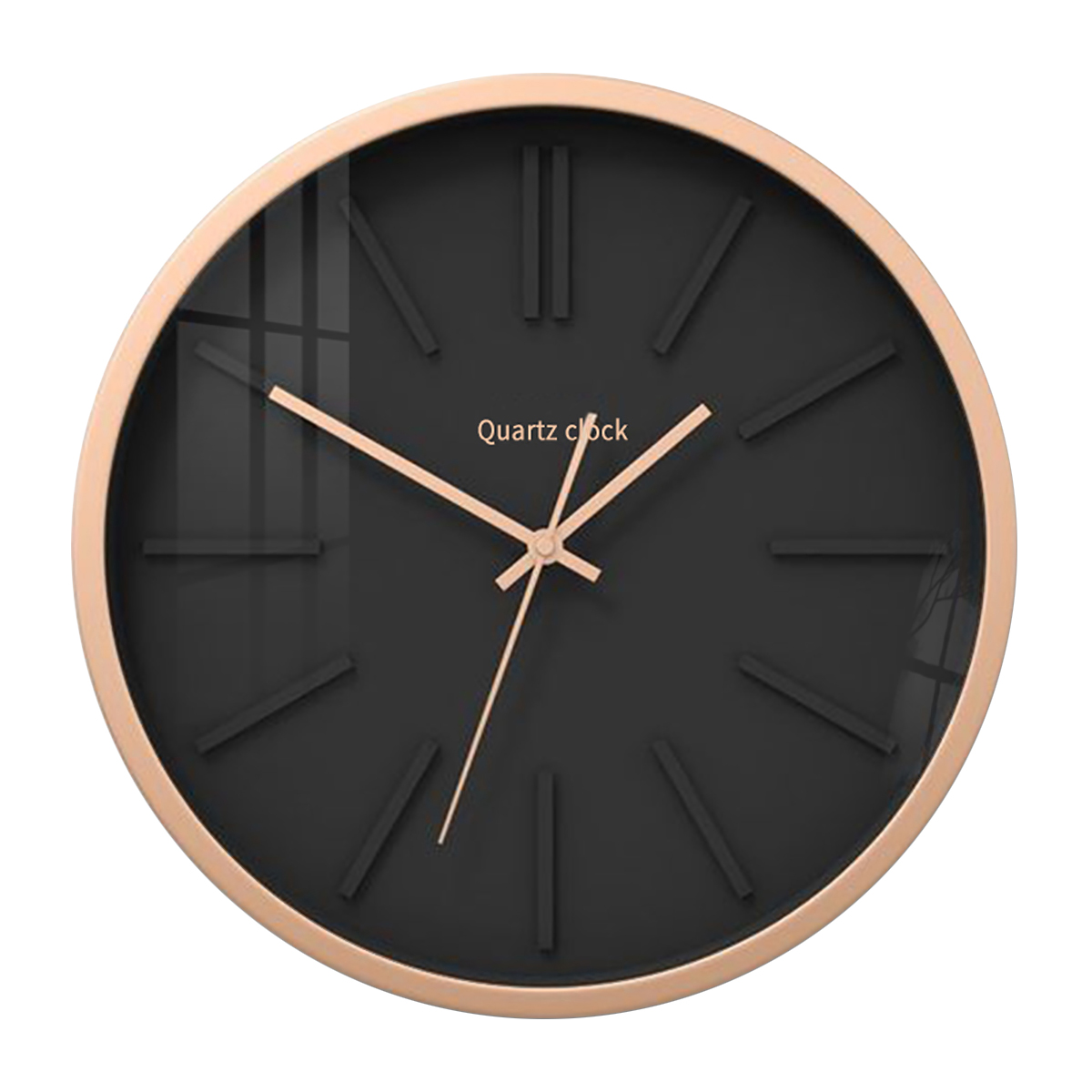 Ρολόι τοίχου στρογγυλό από MDF και μέταλλο με μαύρο φόντο και μπεζ περίμετρο σε κλασικό σχέδιο.