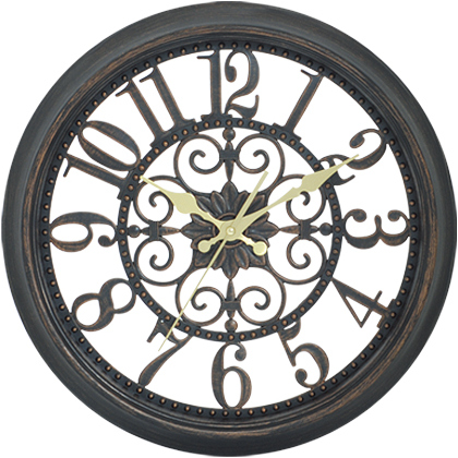 Ρολόι τοίχου στρογγυλό σε κλασικό διαχρονικό στυλ με περίτεχνο σχέδιο στο κέντρο σε απόχρωση του μαύρου.
