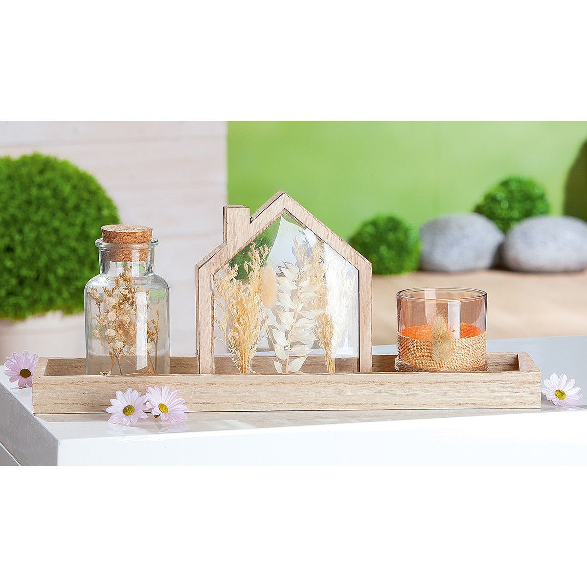 Σετ κερί σε βάζο/δοχείο/LED σπιτάκι σε δίσκο 3τμχ