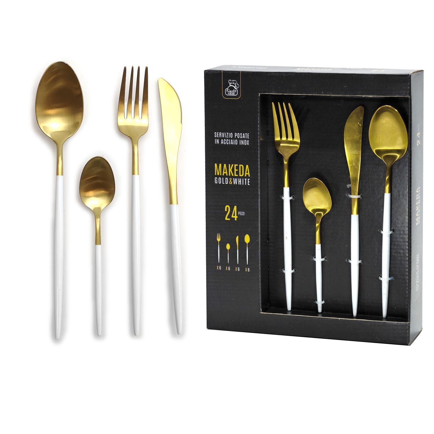 Σετ μαχαιροπήρουνα MAKEDA λευκό/χρυσό inox 24τμχ.