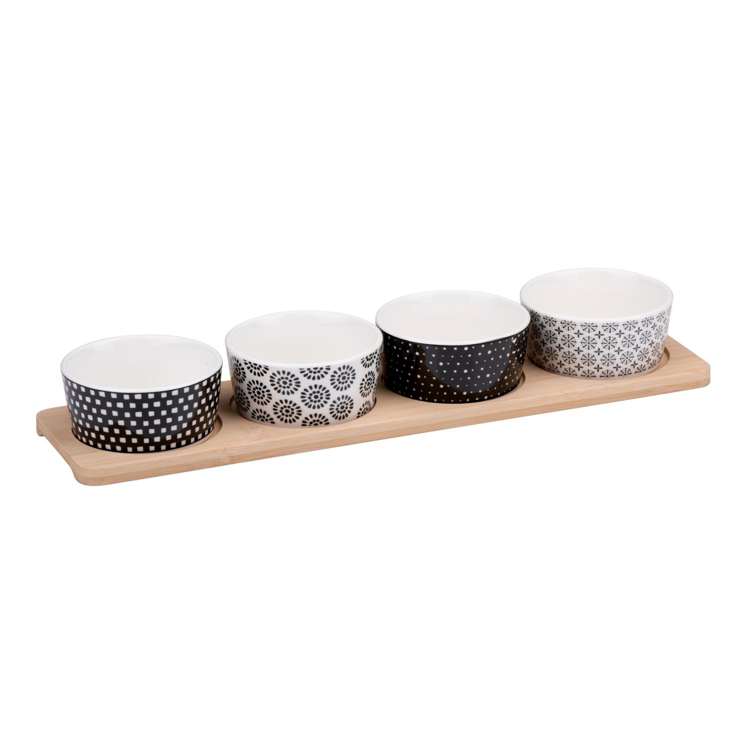 Αναδείξτε το σερβίρισμα σας με αυτό το σετ τάπας από την Alpina. Περιλαμβάνει πέντε κομμάτια με μπαμπού βάση και κεραμικά μπολ για μοναδική παρουσίαση.