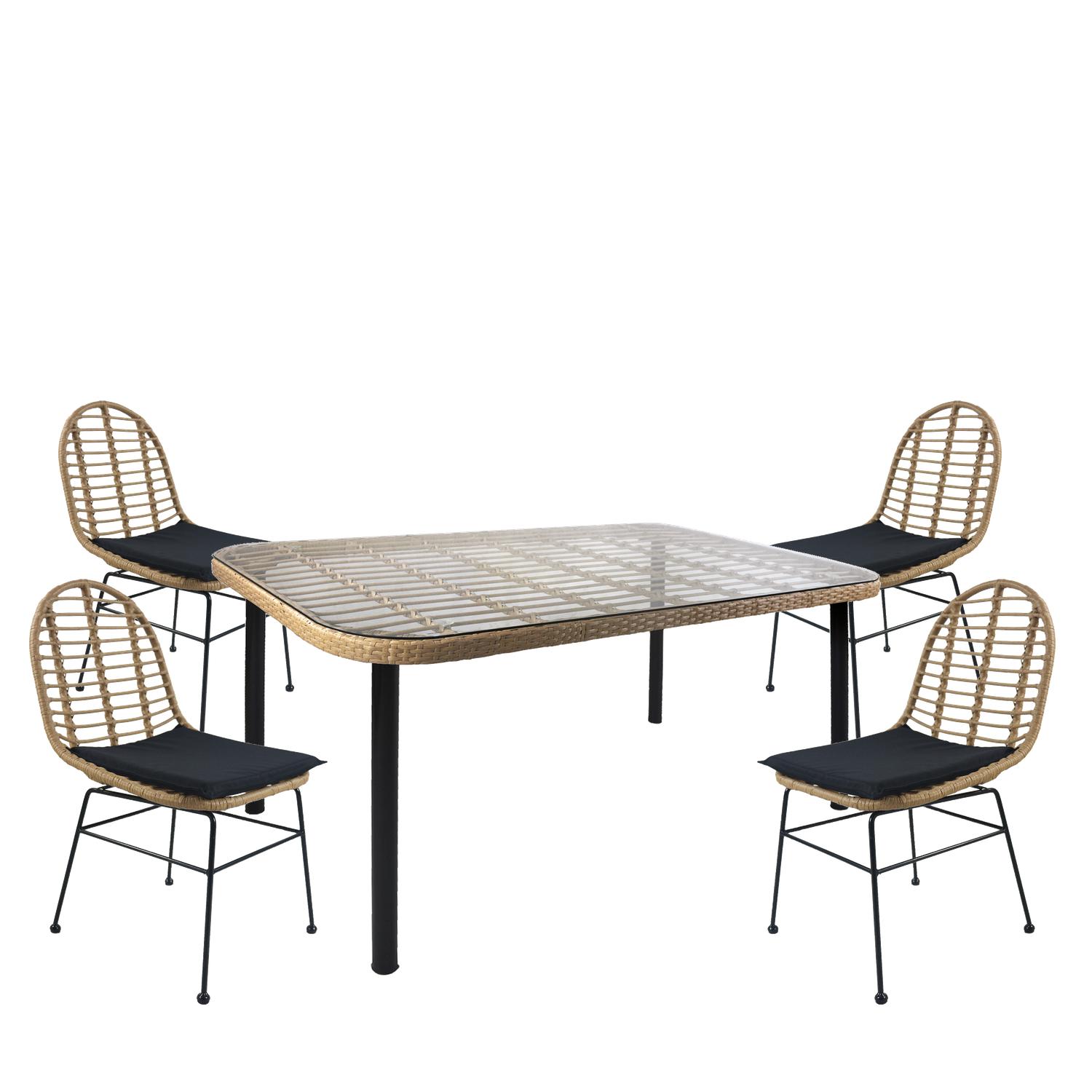 Σετ Τραπεζαρία Κήπου ArteLibre AMPIUS Φυσικό/Μαύρο Μέταλλο/Rattan/Γυαλί Με 4 Καρέκλες 14990283