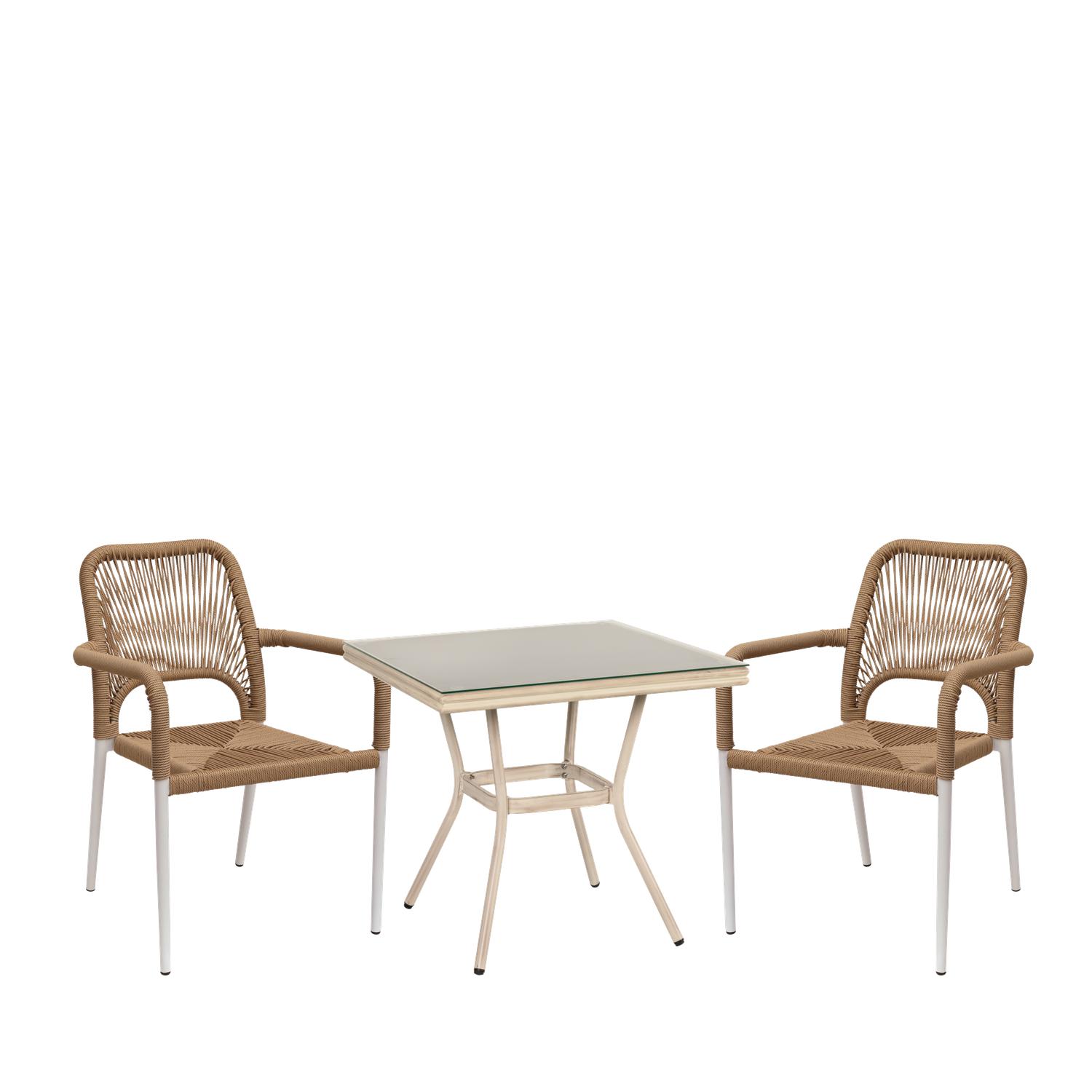 Σετ Τραπεζαρία Κήπου ArteLibre ANGOLA Λευκό Αντικέ Με 2 Πολυθρόνες 14990270