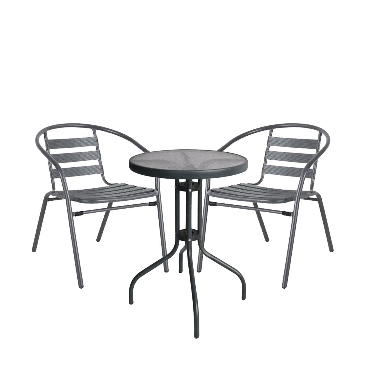 Σετ Τραπεζαρία Κήπου Earth Μέταλλο Γκρι Με 2 Πολυθρόνες