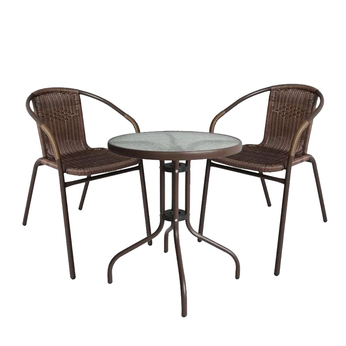 Σετ Τραπεζαρία Κήπου Earth Μέταλλο Καφέ Με 2 Πολυθρόνες