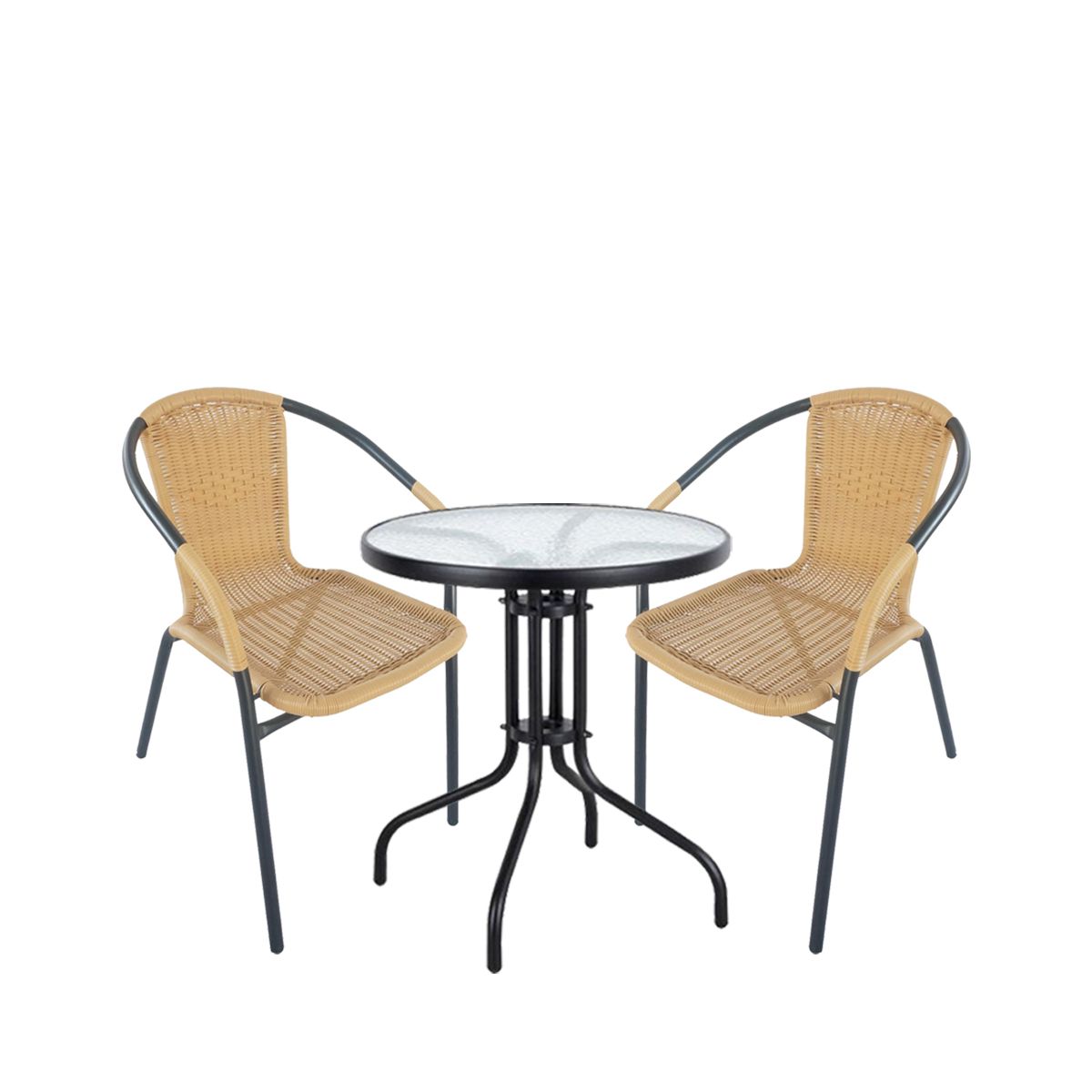 Σετ Τραπεζαρία Κήπου ArteLibre Earth Μέταλλο Μαύρο/Μπεζ Με 2 Πολυθρόνες