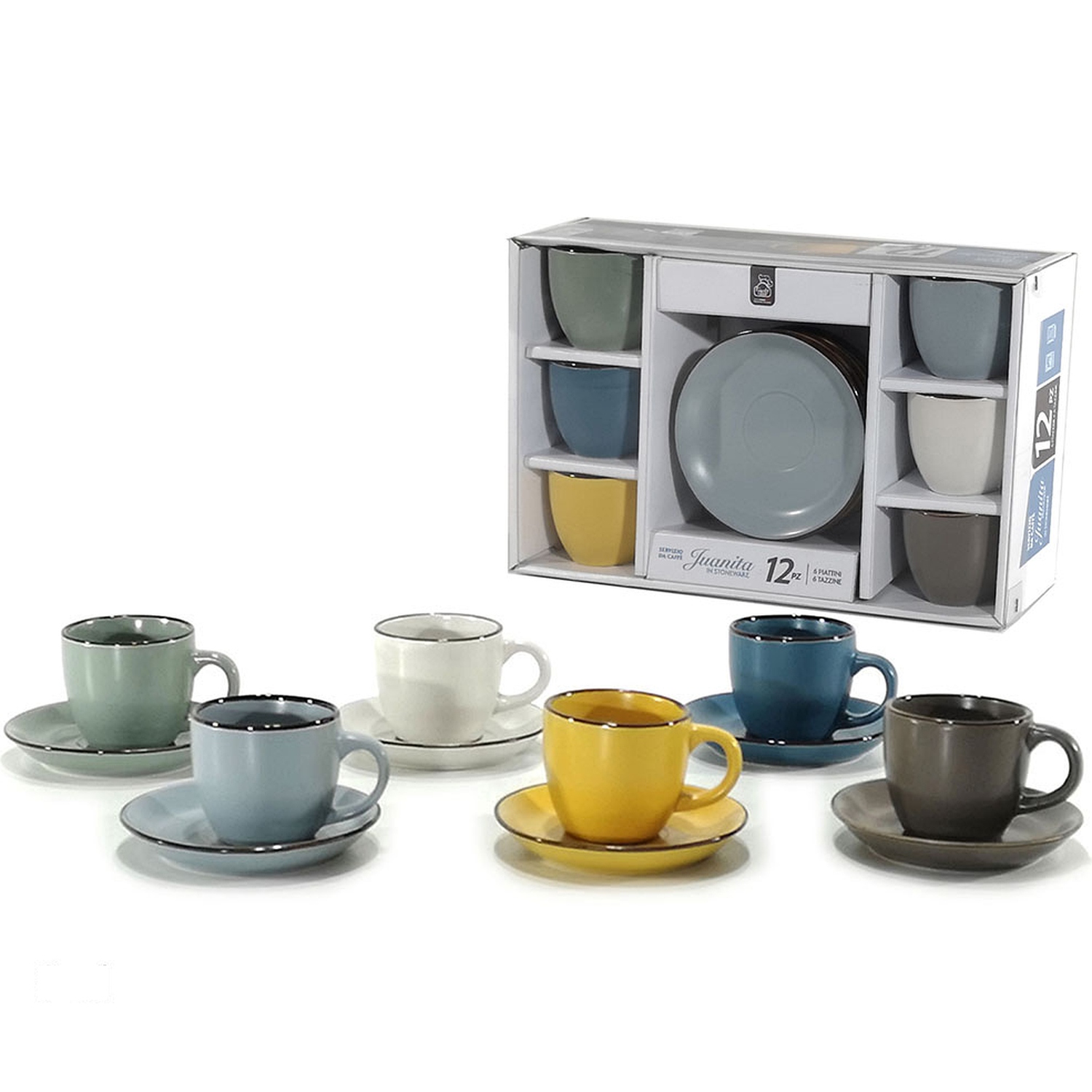 Αναβαθμίστε την εμπειρία του καφέ σας με αυτό το κομψό σετ φλιτζανιών Juanita. Το σετ περιλαμβάνει 6 φλιτζάνια και 6 πιατάκια, με χωρητικότητα 10cl το καθένα. Διατίθεται σε ποικιλία χρωμάτων, προσθέτοντας στυλ και ζωντάνια στο τραπέζι σας. Ιδανικό για καθημερινή χρήση ή για να εντυπωσιάσετε τους καλεσμένους σας.
