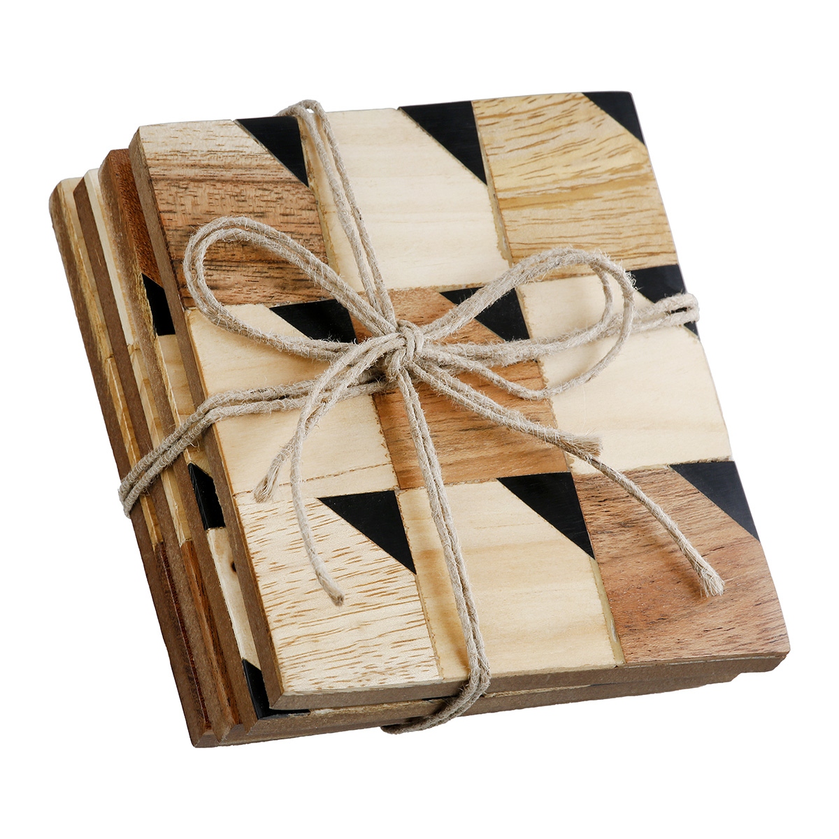Σουβέρ τετράγωνο μαύρο/καφέ/λευκό ξύλο 10x10cm σετ 4τμχ.
