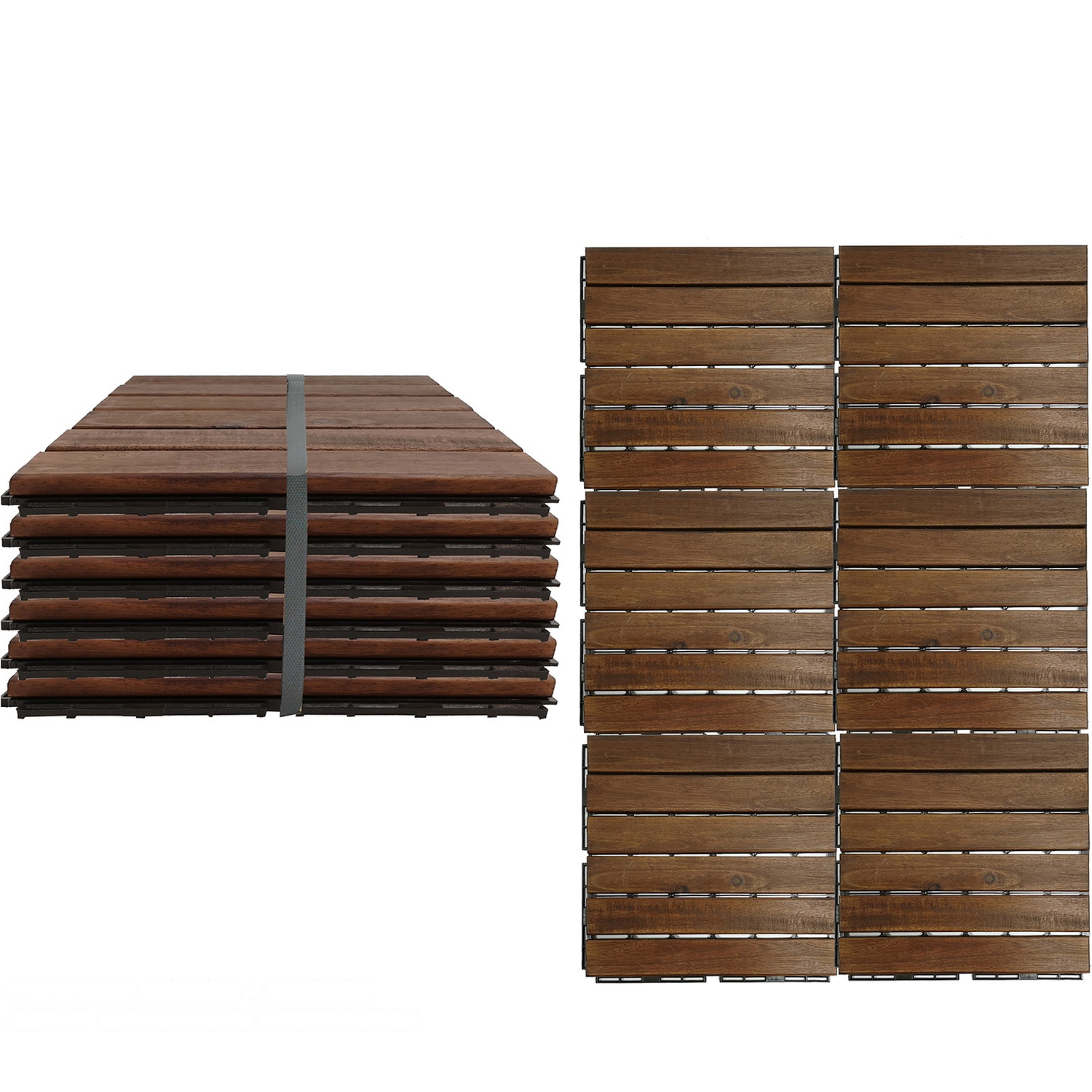 Σετ 6 πλακιδίων από ακακία και πλαστικό σε καφέ χρώμα, με διαστάσεις 30x30x1.9cm, ιδανικά για εξωτερικούς χώρους.