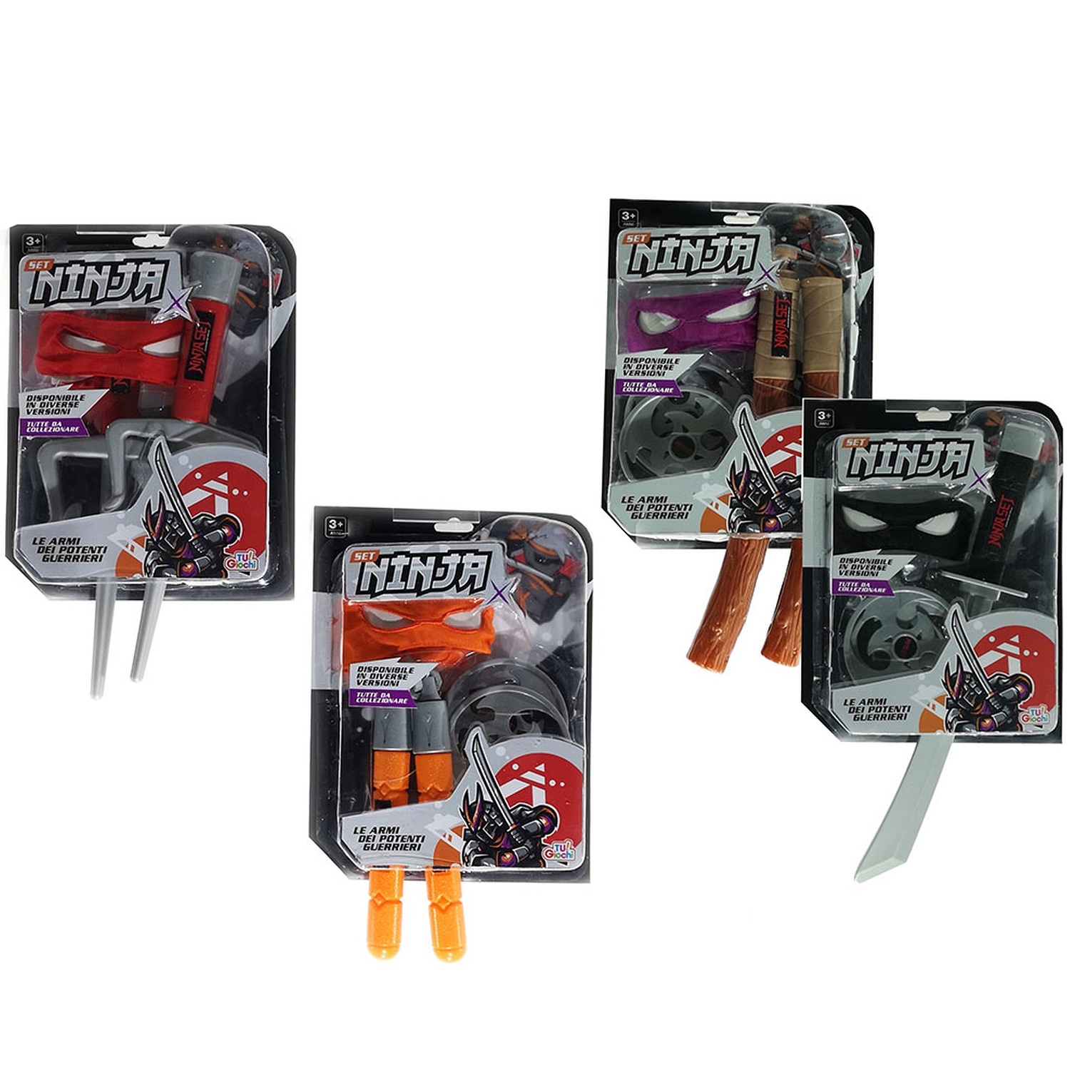Σετ παιχνιδιών ninja με μάσκες και όπλα για μικρούς πολεμιστές. Κατάλληλο για παιδιά άνω των 3 ετών.