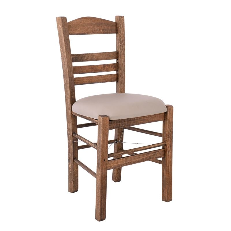 ΣΙΦΝΟΣ Καρέκλα Οξιά Βαφή Εμποτισμού Καρυδί, Κάθισμα Pu Cappuccino