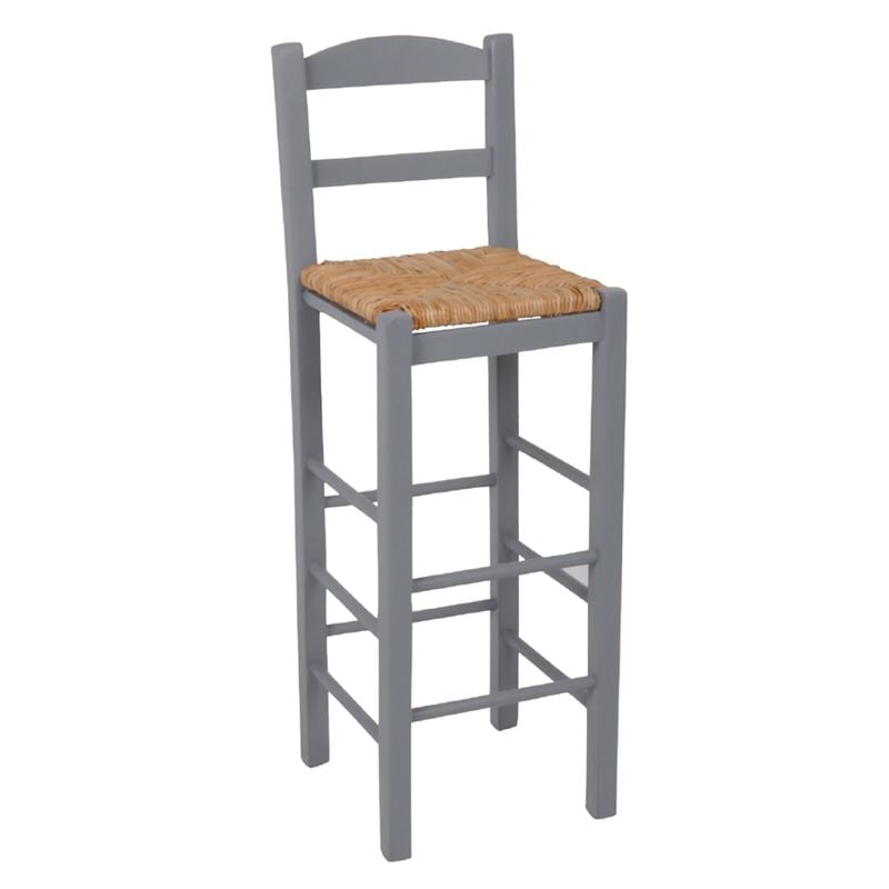 Ρ980,Ε10 ΣΙΦΝΟΣ Σκαμπό BAR 42RC Ψάθα Εμποτ.Λάκα Γκρι