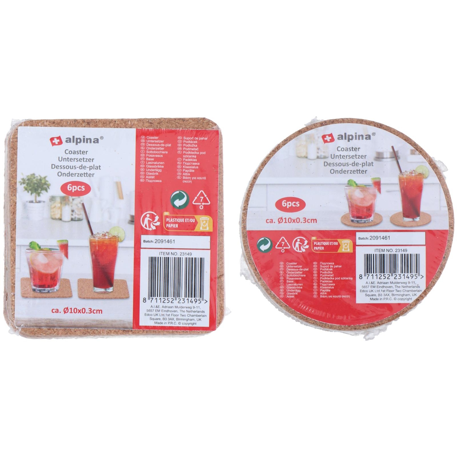 Τα σουβέρ της ALPINA είναι κατασκευασμένα από ανθεκτικό υλικό και διατίθενται σε δύο διαφορετικά σχέδια. Το σετ περιλαμβάνει 6 τεμάχια, ιδανικά για την προστασία των επιφανειών από λεκέδες και γρατσουνιές.