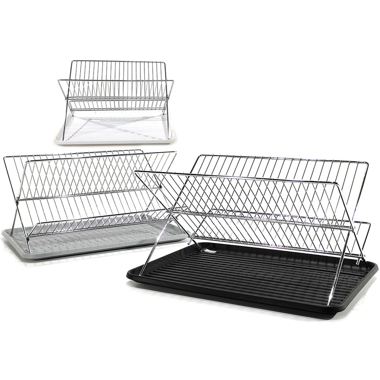 Στεγνωτήρας πιάτων ασημί κατασκευασμένος από πλαστικό και μέταλλο. Ιδανικός για τη σωστή αποστράγγιση των πιάτων μετά το πλύσιμο.