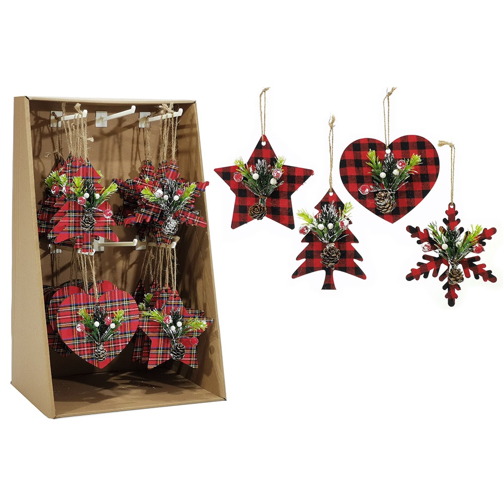 Στολίδι κρεμαστό καρδιά/δεντράκι/χιονονιφάδα/αστέρι ριγέ κόκκινο σε 4 σχέδια.