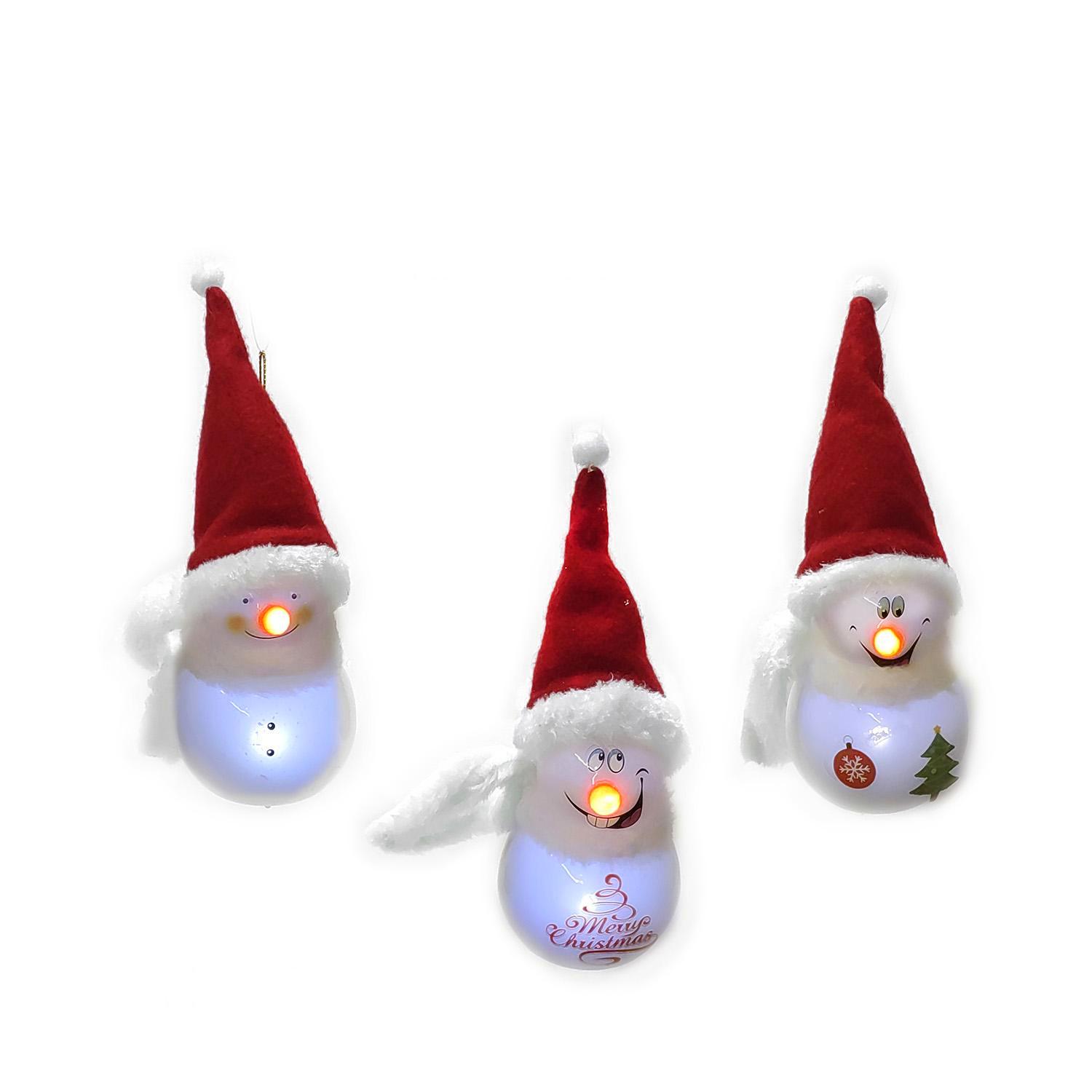 Στολίδι Κρεμαστό Κεφάλι Με Καπέλο Άι Βασίλη Φωτιζόμενο Φ6x17cm Σε 3 Σχέδια