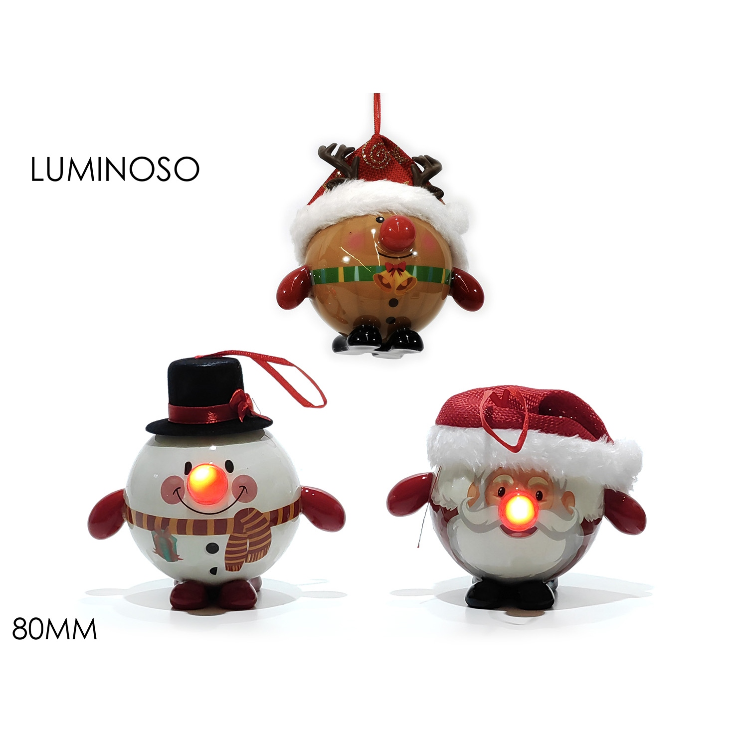 Στολίδι κρεμαστό μπάλα φιγούρα φωτιζόμενο πολύχρωμο Φ8cm σε 3 σχέδια.