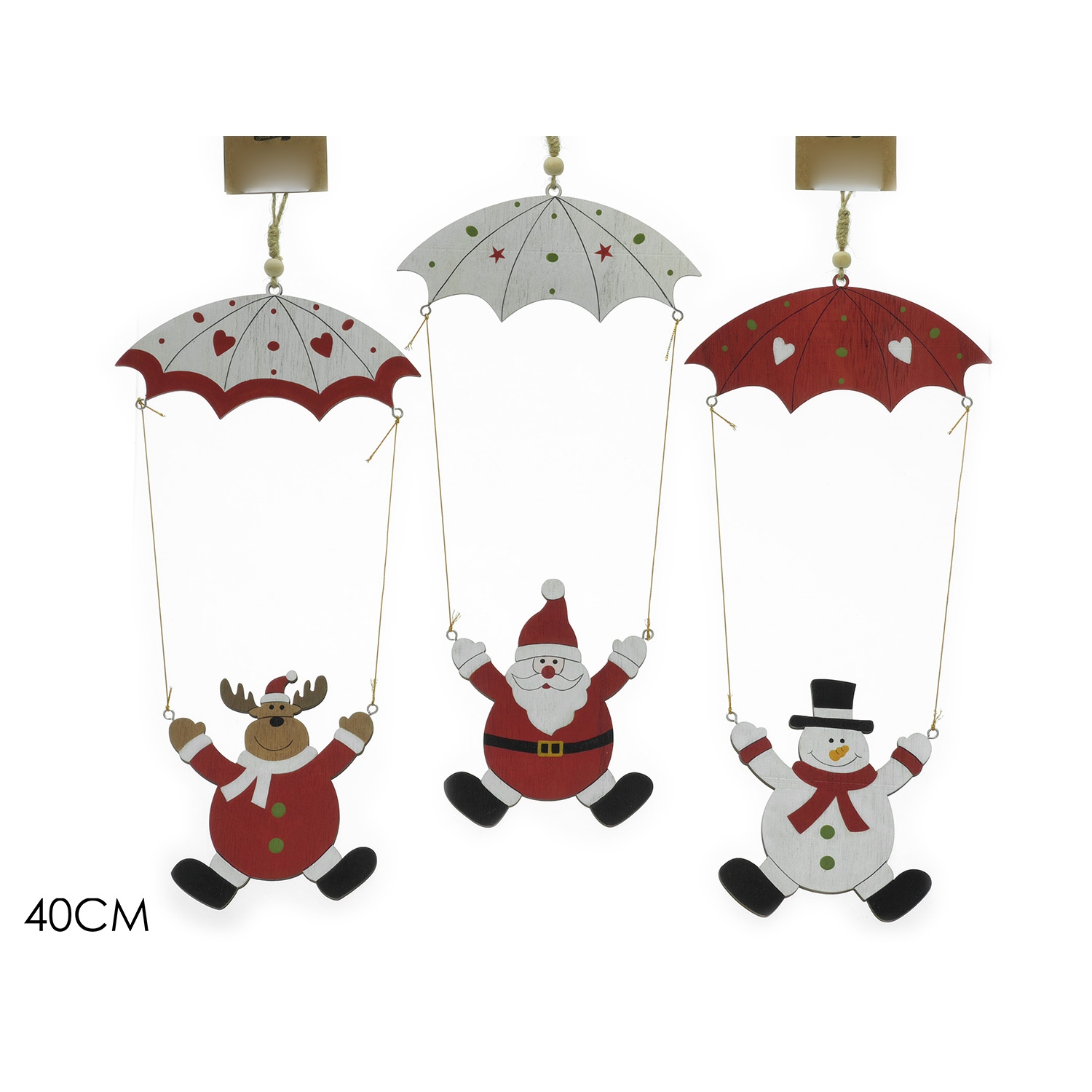 Στολίδι Κρεμαστό Φιγούρα Με Αλεξίπτωτο Κόκκινο/Λευκό Ξύλο 40cm Σε 3 Σχέδια