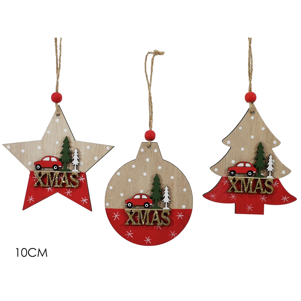 Στολίδι κρεμαστό φυσικό/λευκό ξύλο 10cm σε 3 σχέδια.