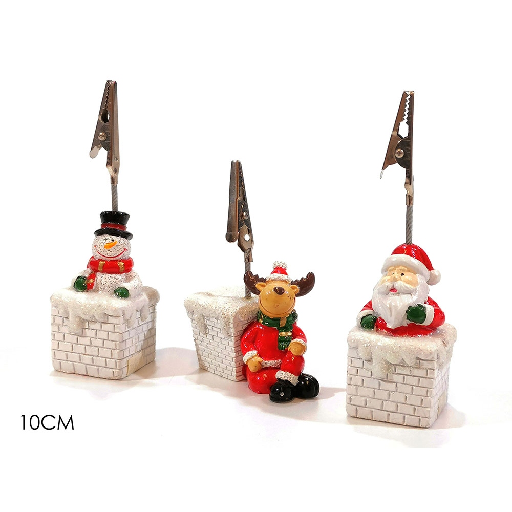 Στολίδι με πιαστράκι Άι Βασίλης/τάρανδος/χιονάνθρωπος σε καμινάδα κόκκινο/λευκό πλαστικό 10cm σε 3 σχέδια.