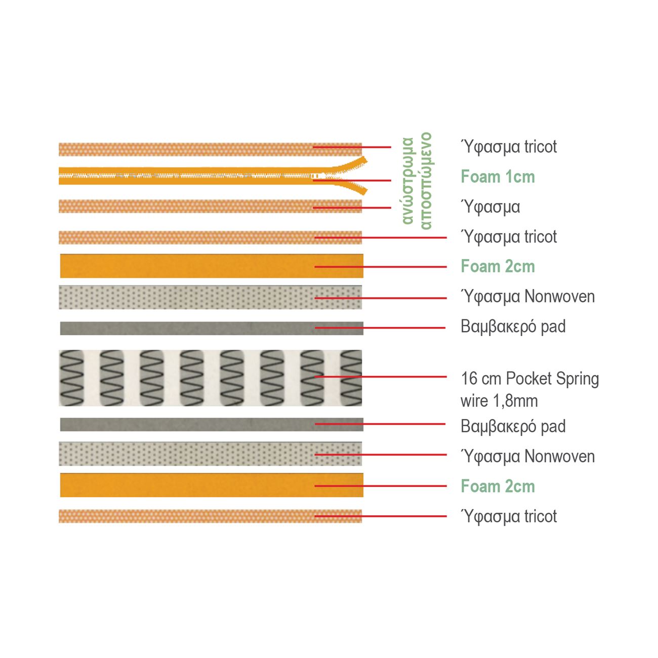 Στρώμα POCKET SPRING / ΑΝΩΣΤΡΩΜΑ ΑΦΑΙΡΟΥΜΕΝΟ με φερμουάρ.
